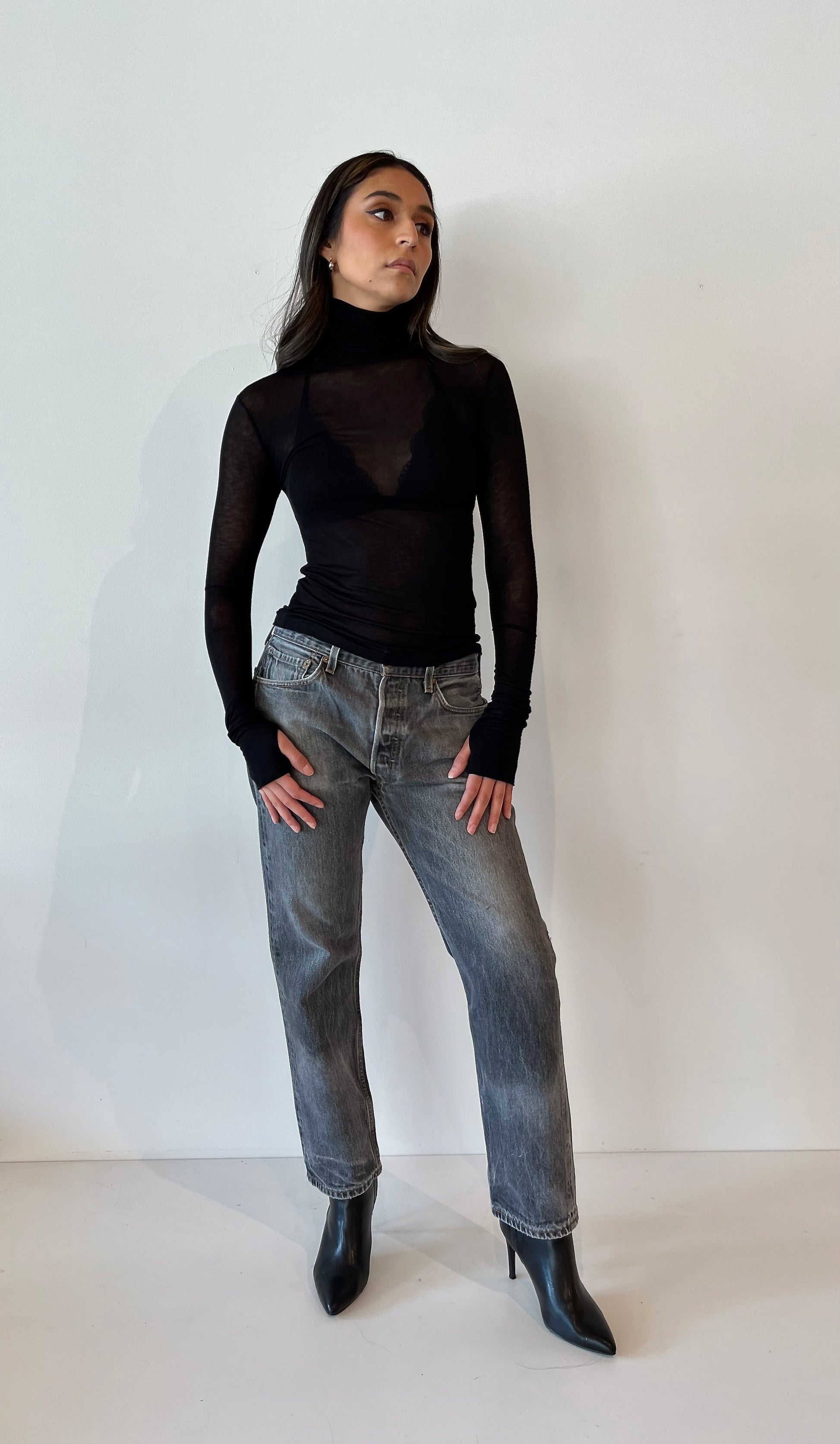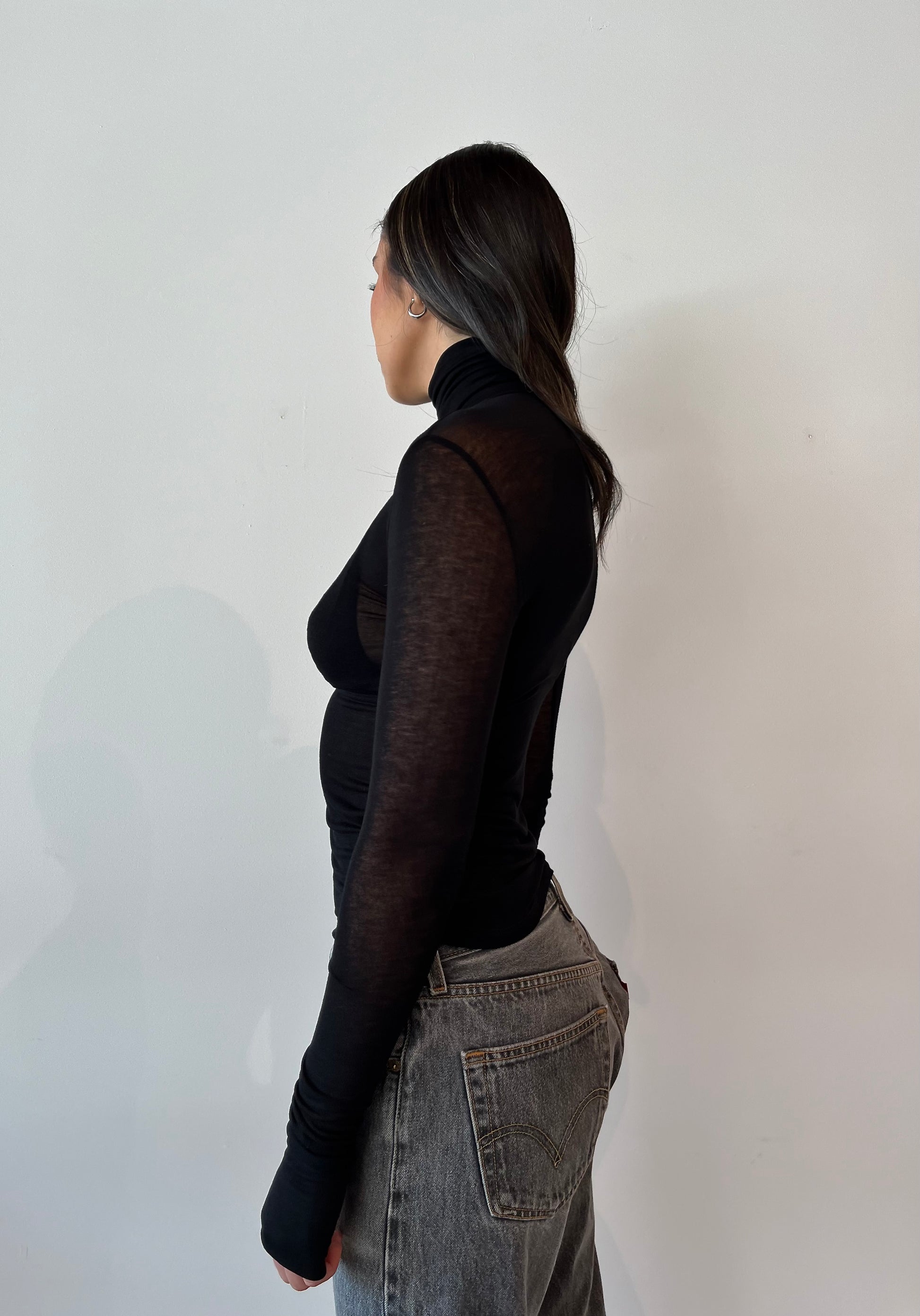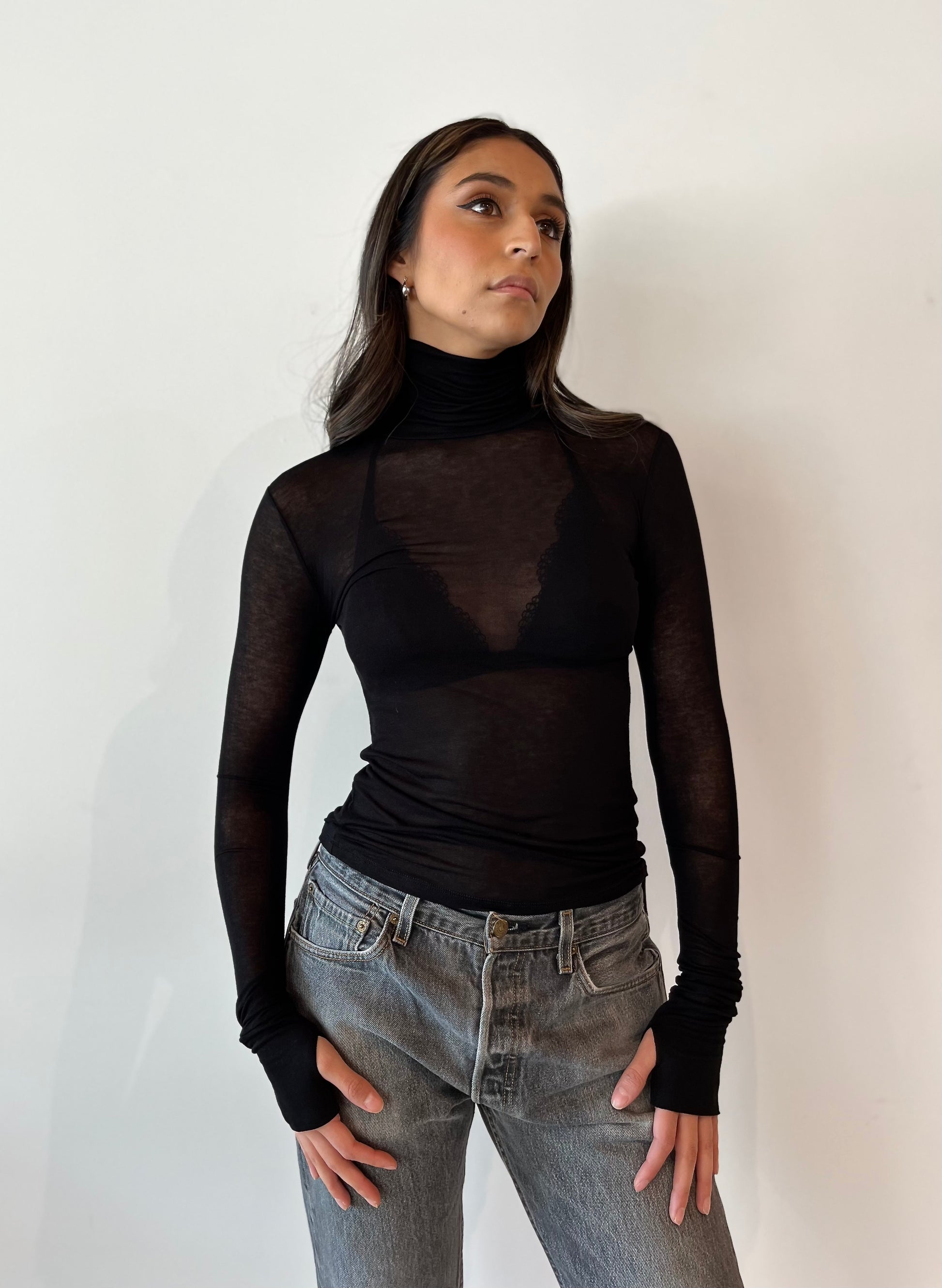 Marcella NYC Eloise Sheer Black Turtleneck
