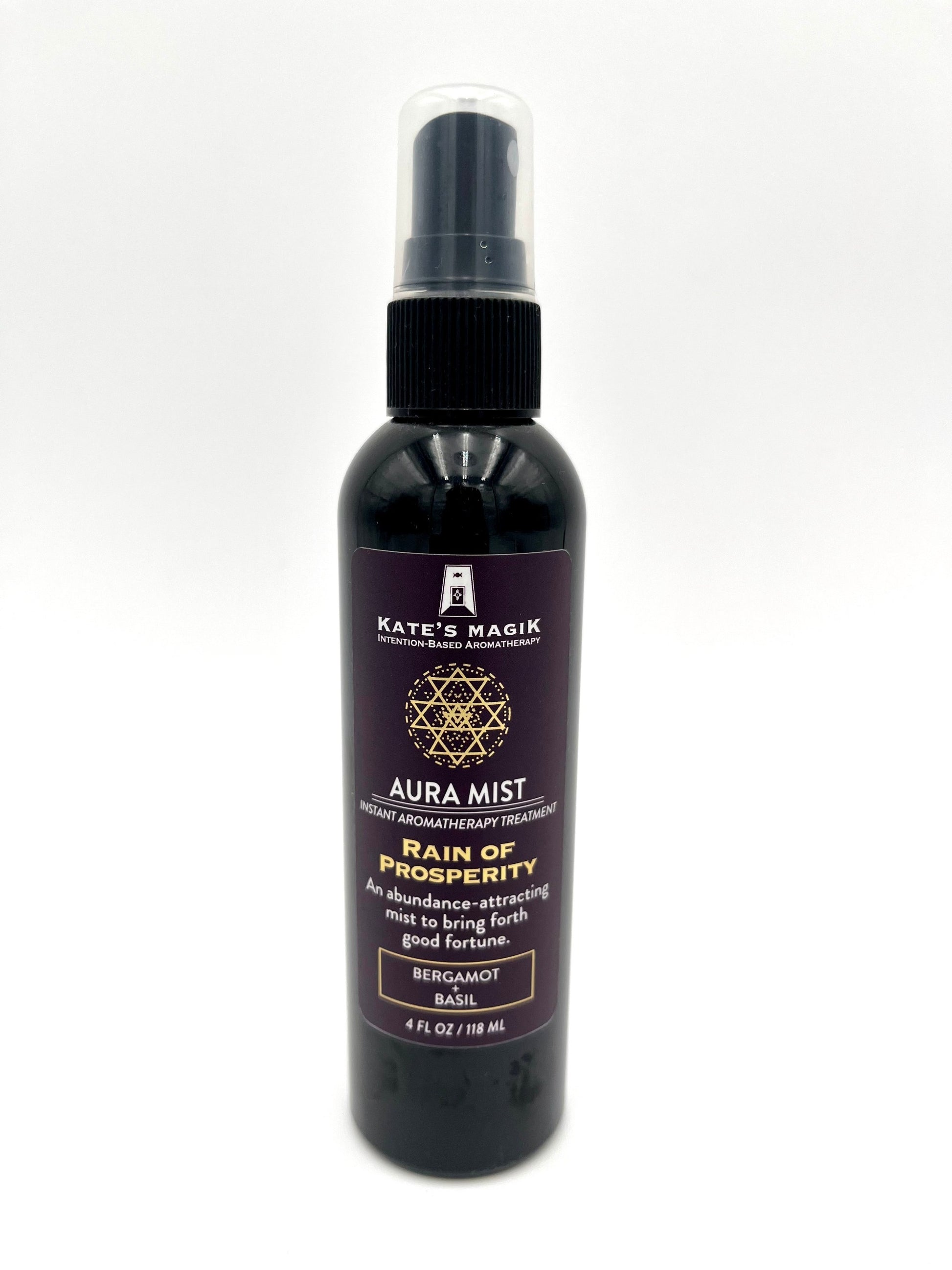 Kate's Magik Rain of Prosperity Aura Mist helps to create a prosperous atmosphere and serves as a tool to set and maintain your outlook. Basil and Bergamot have been used since ancient times as symbols of prosperity and as a means to direct the flow of abundance.