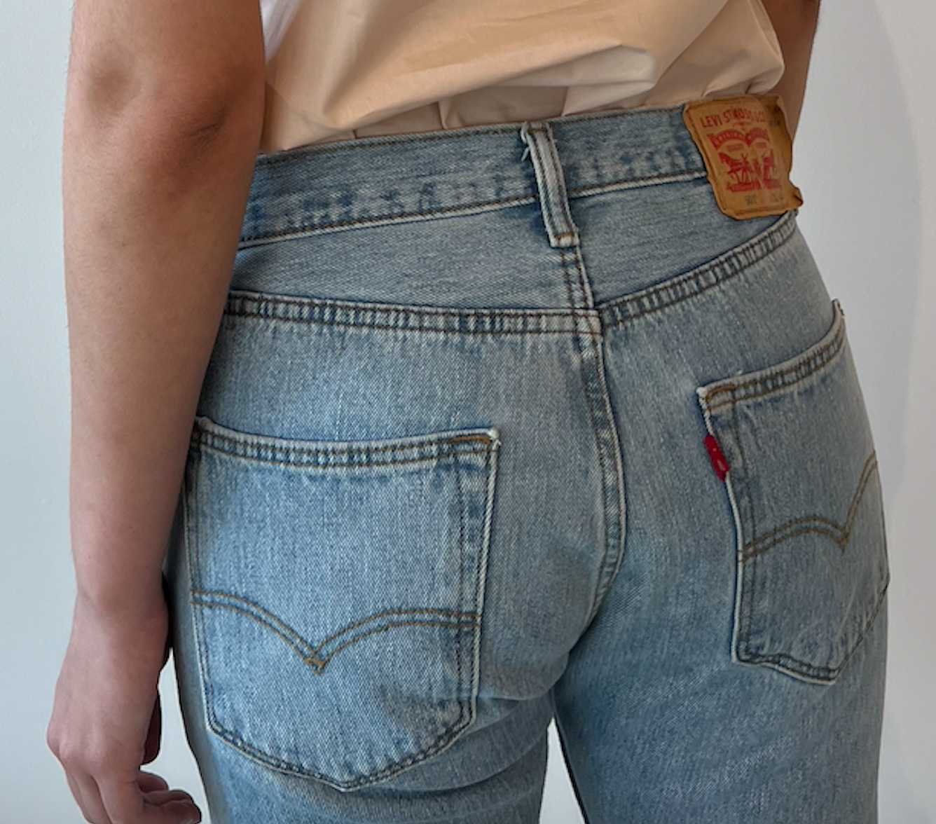 One of a kind authentic vintage button-fly Levis, original label reads 31x30. This waist measures 31” around the top interior and hangs low and slouchy on the hip for women's size 24-25 jeans. If you wear size 26-27 jean it will hang right below the navel more snug and tailored. From top button to crotch measures 11”. Has 2 ink blemishes near front right pocket. Inseam is 29". Overall authentic vintage markings in accordance with vintage Levis. Perfect for those that wear women’s jean size 27 and under. Contact us with any fit questions. Vintage is final sale.
